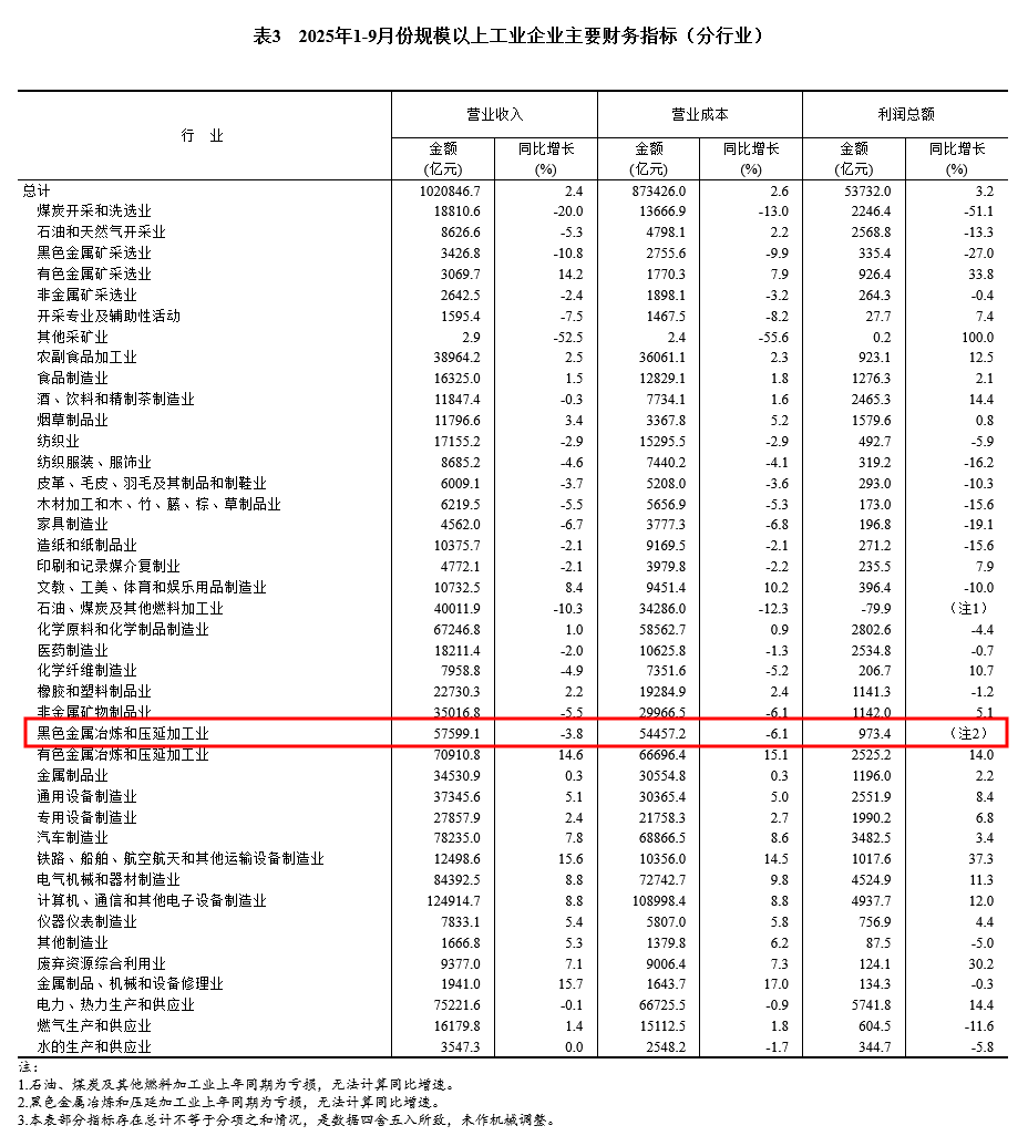 1—9月份,黑色金属冶炼和压延加工业利润总额973.4亿元。